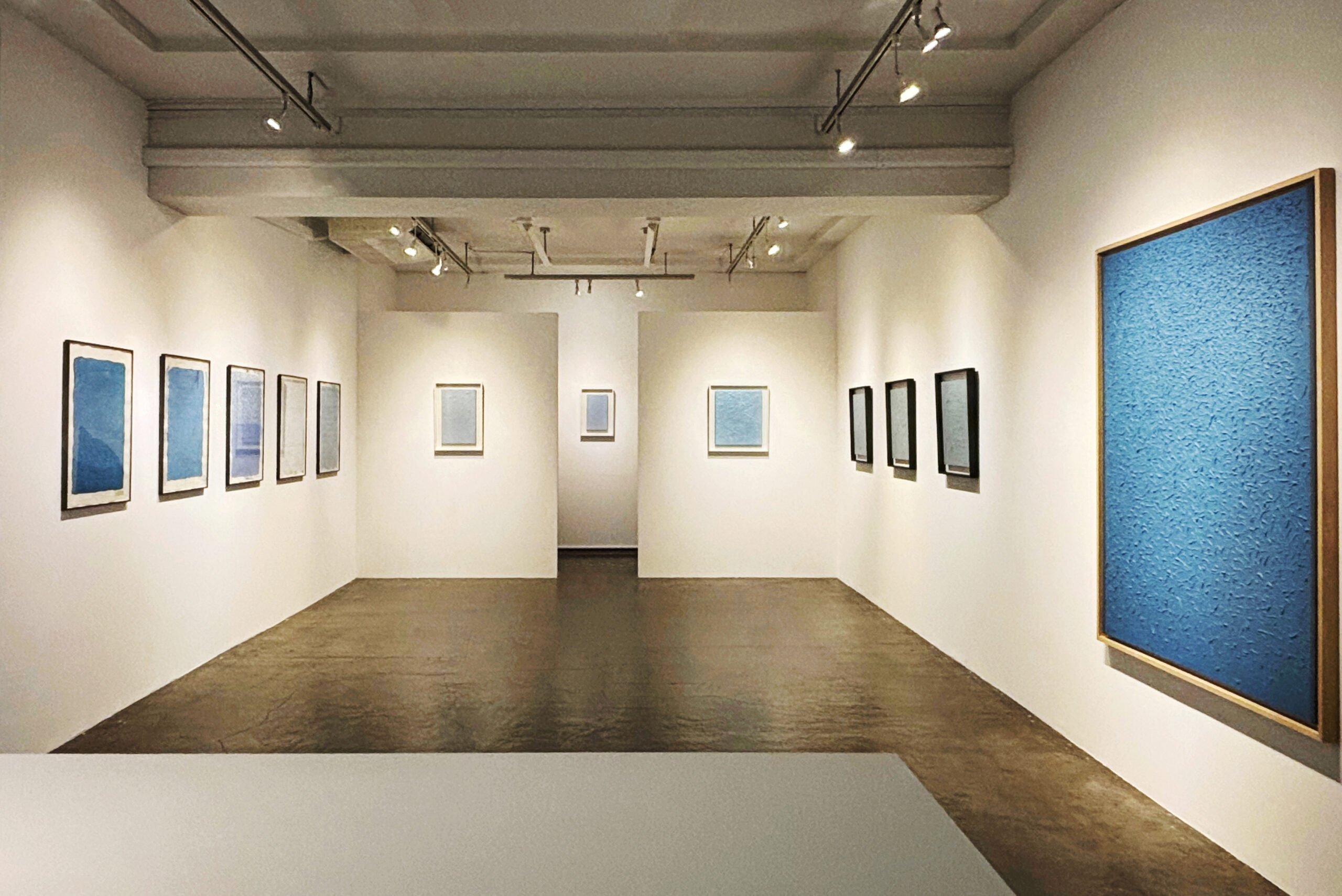 菊畑の‘青’は月光シリーズから本格的にはじまり、菊畑作品において《天動説》から続く《月光》は80年代から発表された平面作品における一節の完成されたシリーズとしての重要性を含んでいます。