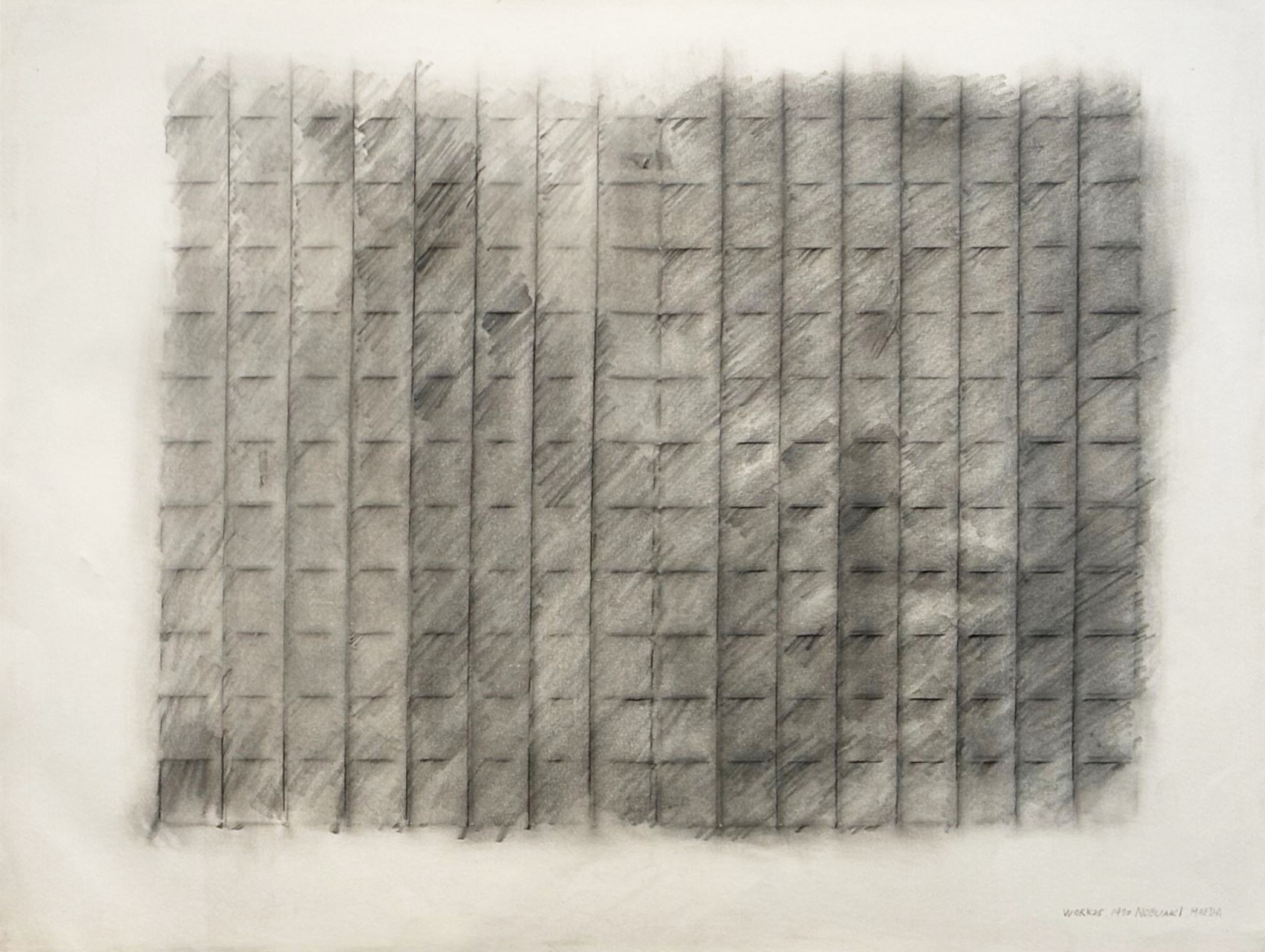 前田信明は1970年 第10回東京ビエンナーレ・東京都美術館「人間と物質」で田中信太郎のアシスタント として参加、成田克彦をはじめもの派や前衛作家と出会います。前田は、もの派やミニマリズムといった大きな潮流が交差する時代に若き日を過ごし、当時、革新的だったゼロックスアー トに取り組み、以降一貫して時間性と空間性を追求し純粋抽象表現を体現するその作品を深みへ と開花させました。ゼロックスアートは横浜美術館に収蔵され、ポンピドゥー・センター(パリ)の学術誌に掲載されるなど、前田の紙を支持体とした作品も再評価が高まっています。 本展では 初期ゼロックス 、フロッタージュ や ドローイングといった作品にフォーカスし、前田信明の軌跡を考察します。